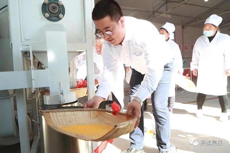10月23日,艷陽高照。朝陽縣南雙廟鎮(zhèn)梨樹溝村像過年一樣熱鬧。隨著梨樹溝村書記殷海順激動地按下了玉米深加工設(shè)備的啟動鍵,便迎來了華錄集團(tuán)等企業(yè)和社會人士助力銷售。該日產(chǎn)5噸玉米碴加工項目是為鞏固脫貧攻堅成果、發(fā)展壯大村集體經(jīng)濟而成立的,預(yù)計每年為梨樹村集體創(chuàng)收5萬元,用于幫扶貧困戶和村集體發(fā)展。該項目堅持以產(chǎn)業(yè)扶貧為主,以產(chǎn)業(yè) 鄉(xiāng)村振興,利用梨樹溝村及南雙廟鎮(zhèn)玉米資源開展玉米深加工項目。