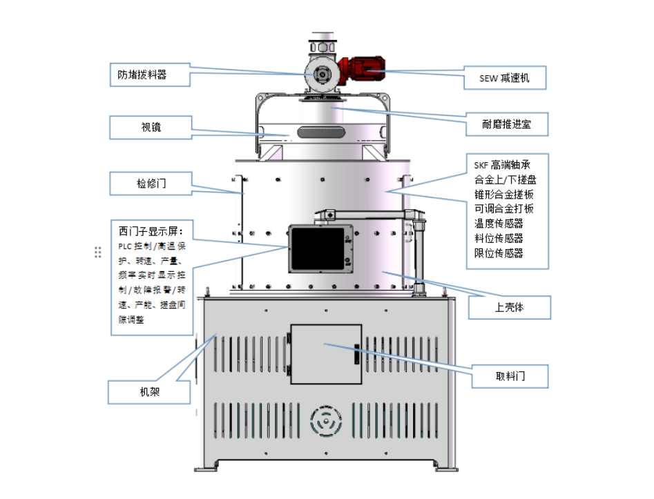 - 智能進料防堵裝置:采用新型防堵結(jié)構(gòu)設(shè)計,保證物料暢通不堵塞。